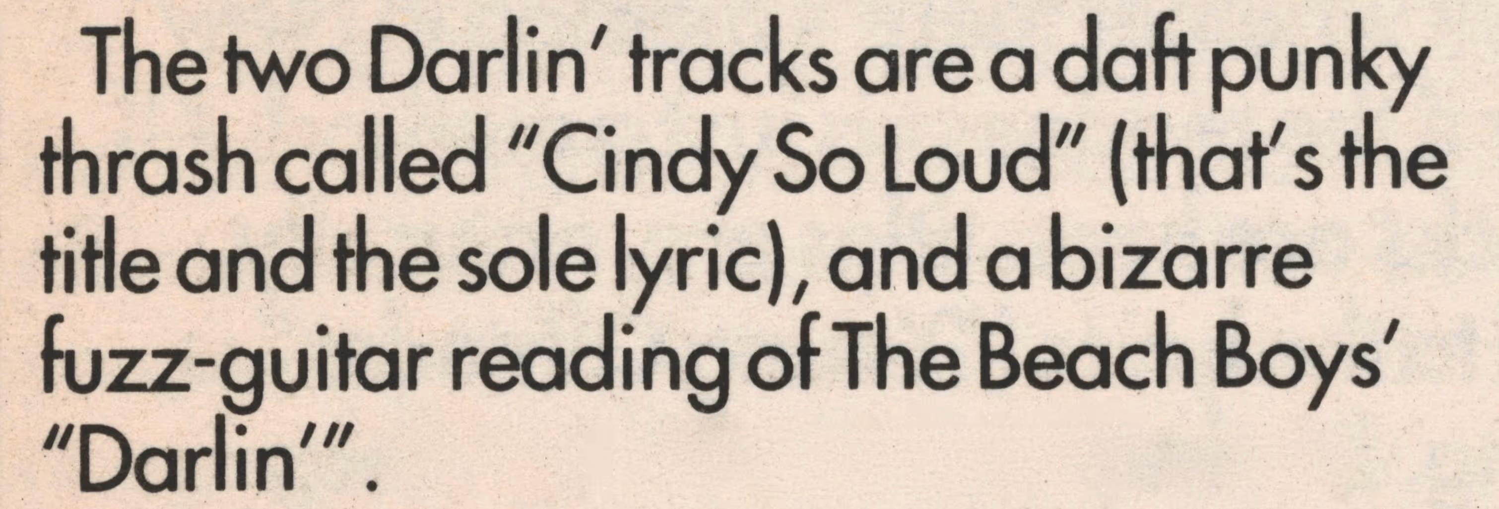 Ils répètent dans un petit studio, se produisent un peu sur scène mais sans grand succès. Darlin' finit malgré tout par sortir deux titres sur une compilation qui passe à peu près inaperçue… sauf pour un magazine anglais spécialisé.
