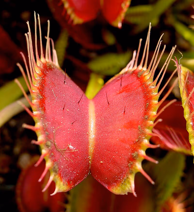 Cette "mâchoire" renferme des poils sensitifs qui, lorsqu’ils sont touchés, provoquent la fermeture quasi-instantanée des lobes, piégeant l’insecte à l’intérieur.