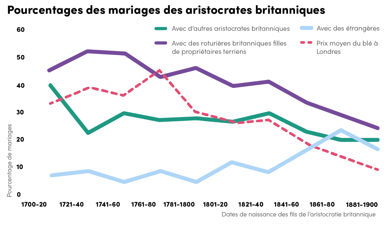 Bingo ! Le chercheur remarque un virage : avant les années 1870, les nobles anglais se marient beaucoup entre eux. Quand il leur arrive d’épouser des roturières, c’est que celles-ci apportent des terres en dot : elles sont choisies pour augmenter la taille des domaines. Mais après 1870, la situation change. Aux roturières anglaises, on préfère les héritières américaines, filles des magnats de l’industrie. Que s’est-il passé ?