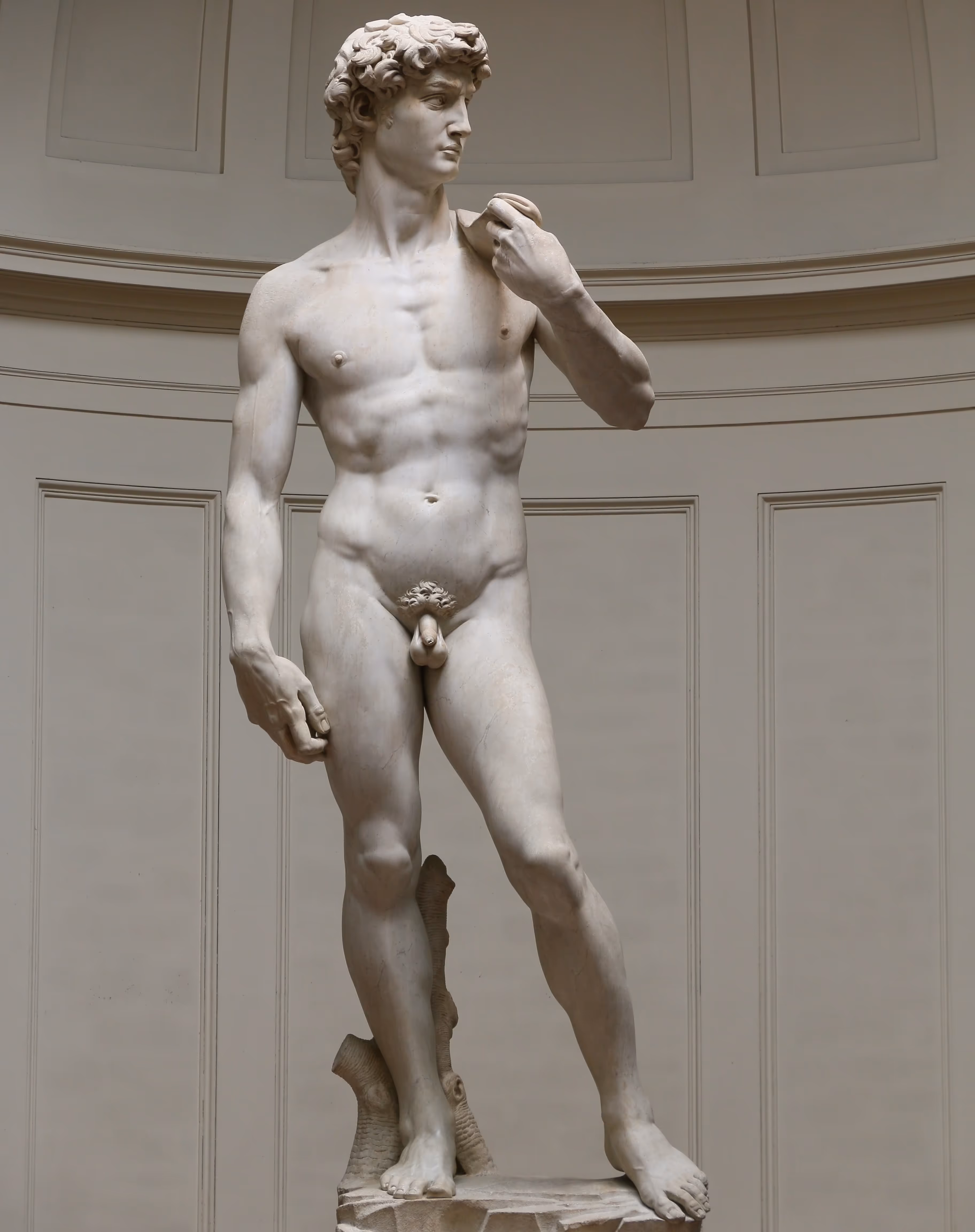 Ce choix n’est pas si étonnant ! L’œuvre réalisée au 16e siècle par Michel-Ange représente un jeune berger biblique de quatre mètres de haut. Prêt à défier son ennemi, ce David ressemble beaucoup à une statue antique. L’artiste en a repris le déhanché pour plus de dynamisme, mais aussi le nu réservé aux héros et aux dieux. De quoi mettre en valeur sa plastique idéale.